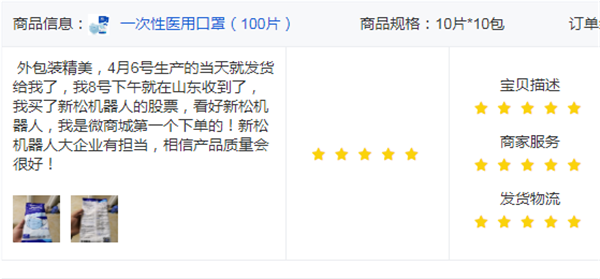 此外,星辉平台娱乐医用口罩在网上商城广受好评,